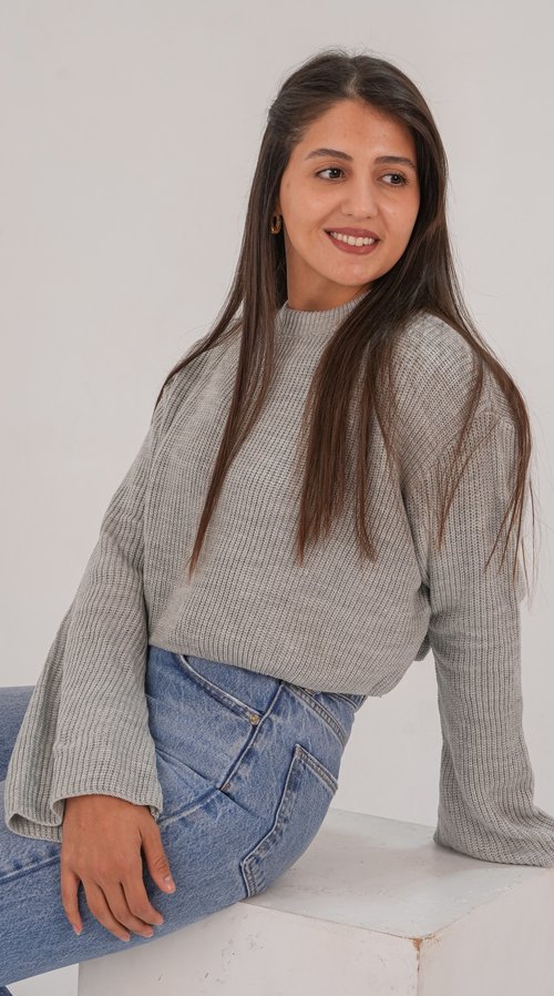 Cozy up in this stylish cropped knitted pullover, featuring a relaxed fit and soft, warm wool fabric. Perfect for chilly days and casual outings.