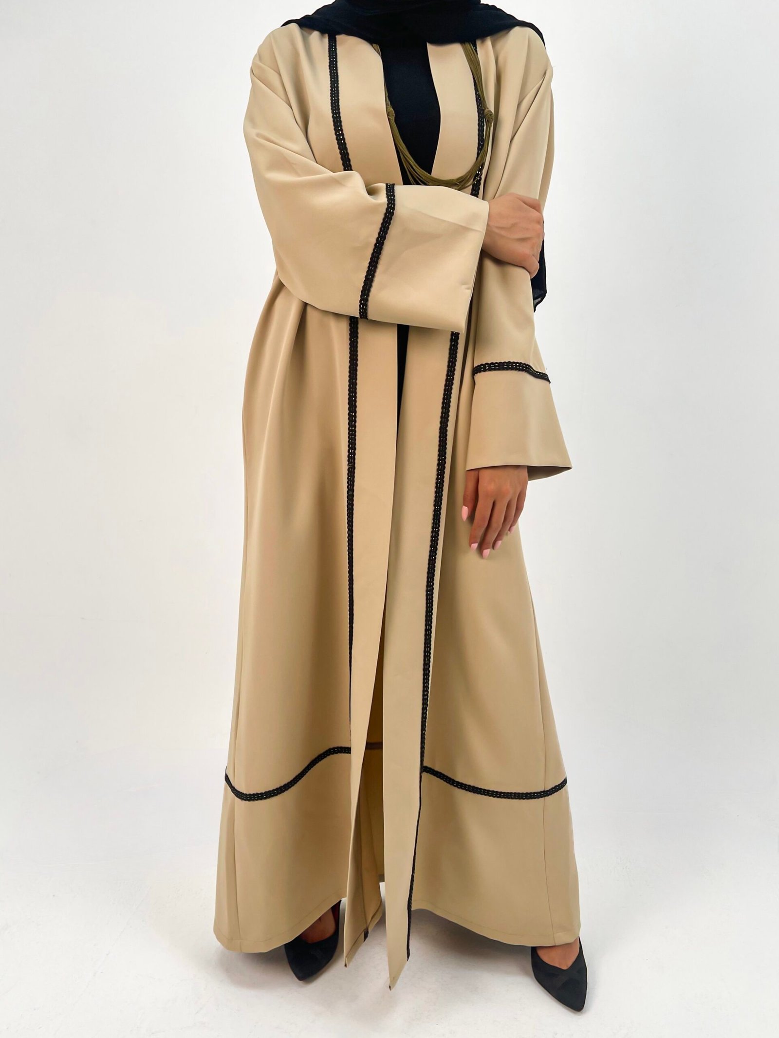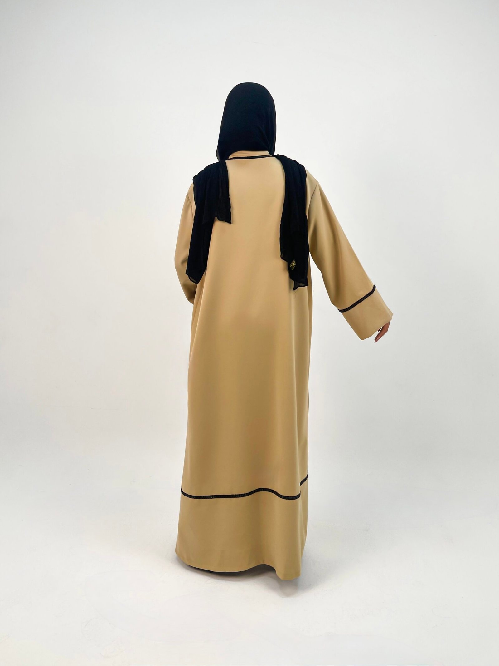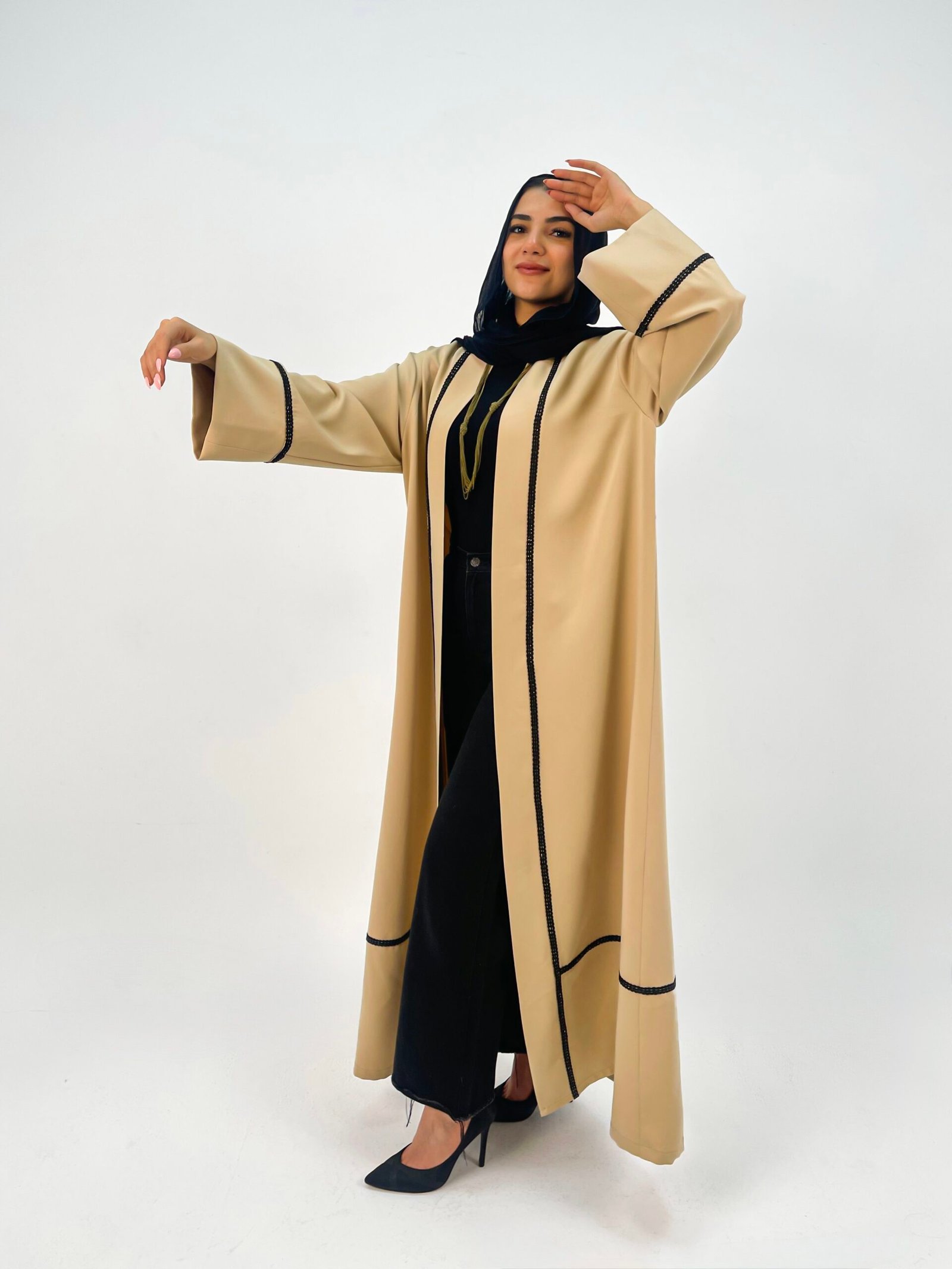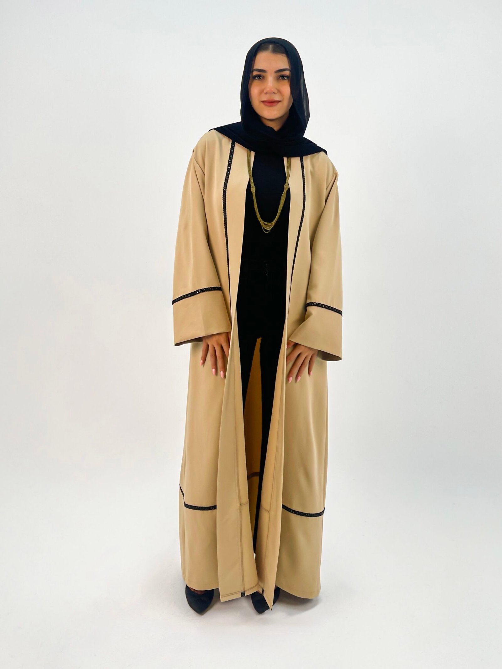 Soft beige tones meet structured black trim in سُكُون, a serene expression of calm and elegance.